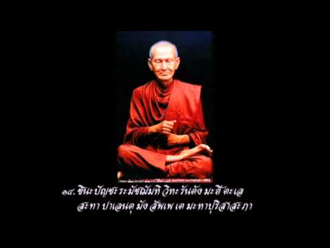 สังโฆ ปะติฏฐิโต มัยหัง อุเร สัพพะคุณากะโร. - หะทะเย เม อะนุรุทโธ สารีปุตโต จะทักขิเณ
